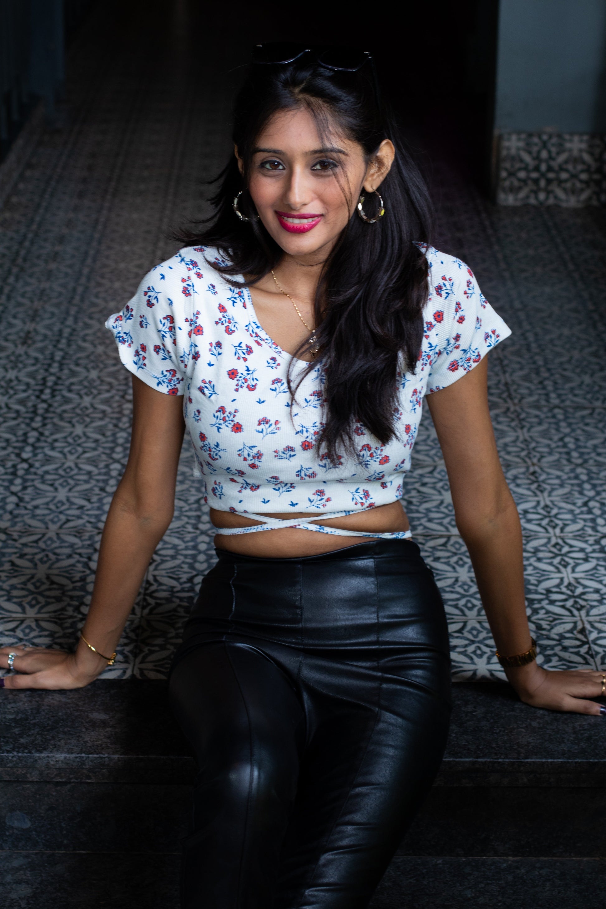Floral Printed Back Lace Tie Top