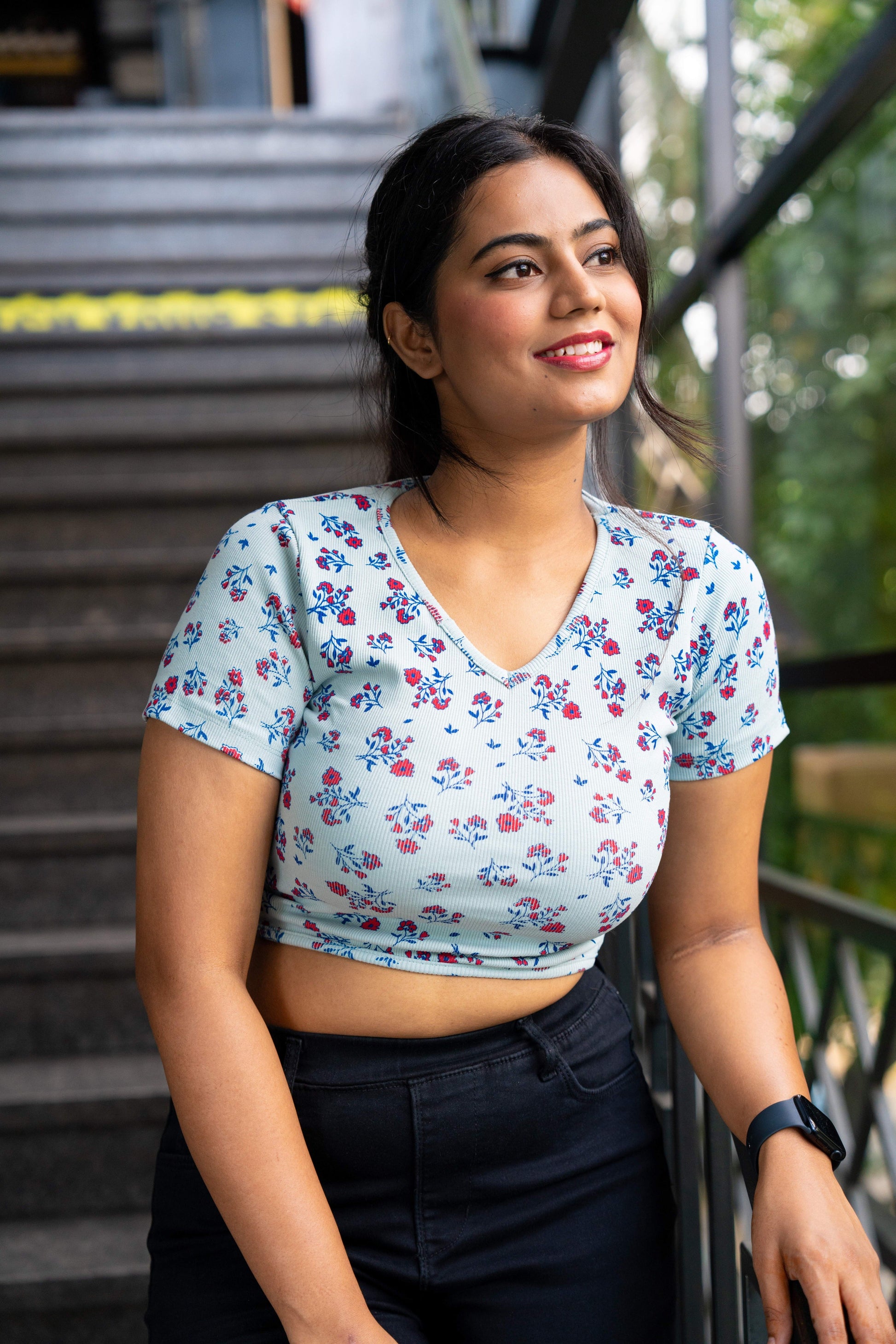 Introducing the elegant and charming Floral Printed Back Lace Tie Top by Stylor, a delightful addition to your summer wardrobe. Made with high-quality rib knit fabric, this top offers a combination of comfort and style, with a moderate stretch that ensures a flattering fit. Featuring a V neck design and a trendy crop length, it exudes a contemporary and fashionable vibe. The captivating floral print adds a touch of femininity, while the back tie detail adds a playful and alluring element to the overall look.