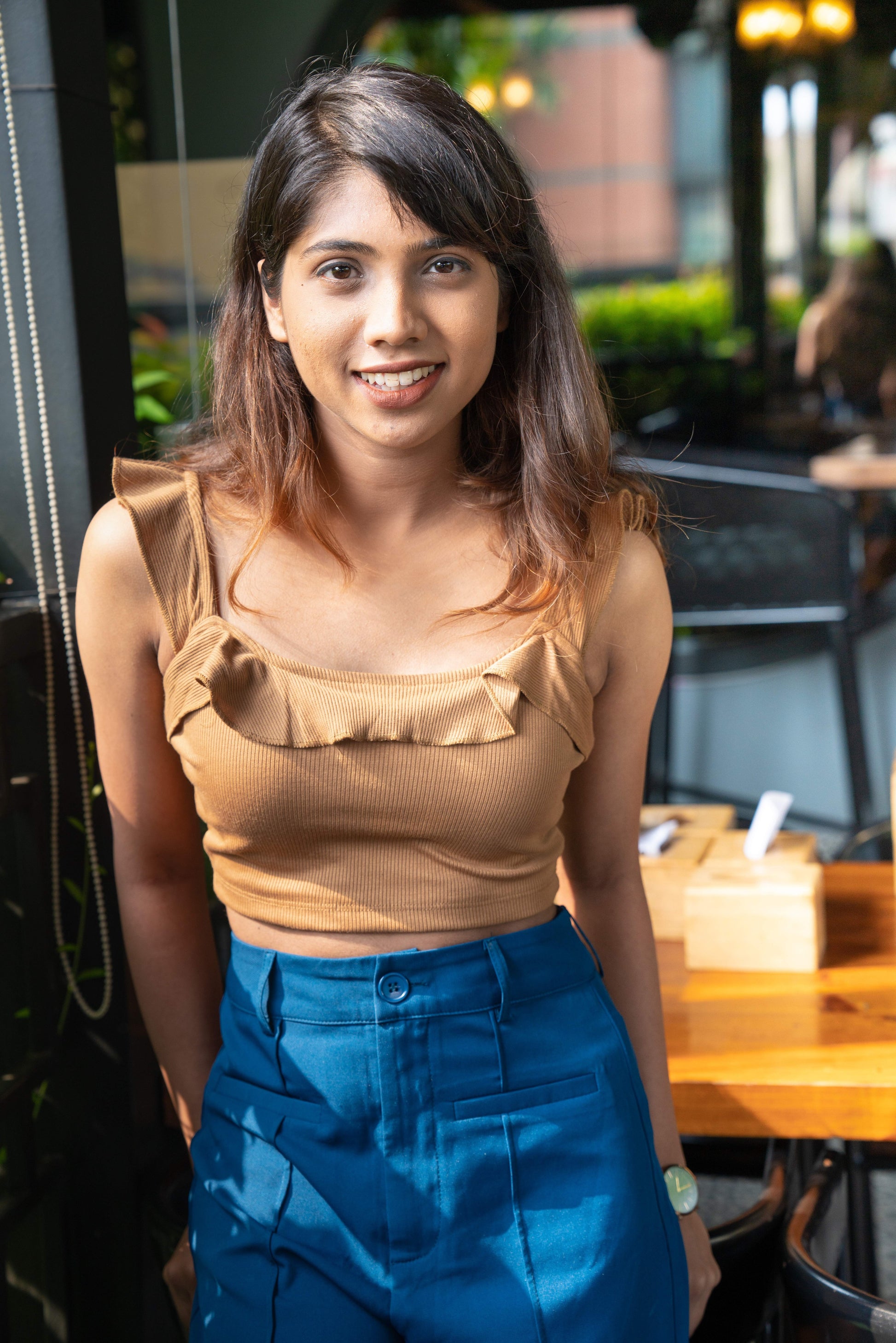 Style Pairing: For a chic and fashionable look, pair your Ruffle Tank Top with high-waisted jeans or a skirt. Complete the outfit with sandals or heels to elevate your style. Consider adding a statement belt to cinch the waist and enhance your silhouette. Layer with a light cardigan or denim jacket for a stylish and versatile ensemble. Whether you're going for a casual day out or dressing up for a special occasion, this top will effortlessly enhance your style with its ruffle detail and trendy design.